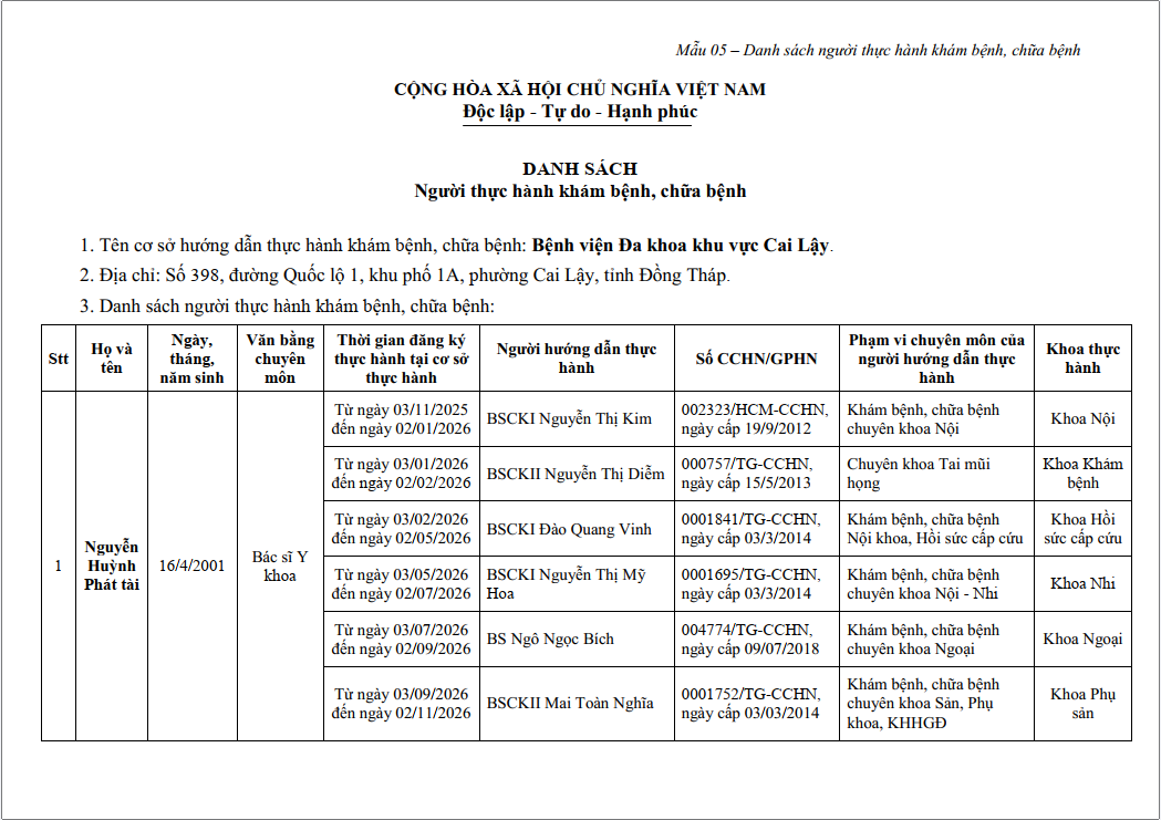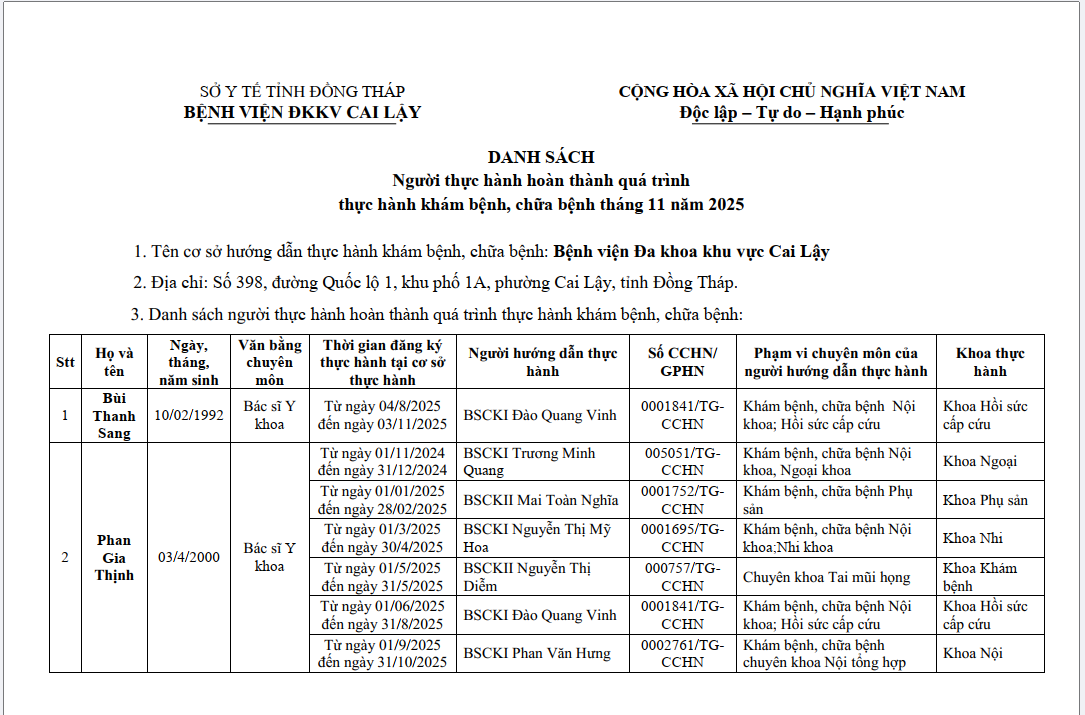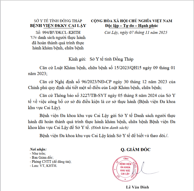 - Email: cailay.bvdkkv@tiengiang.gov.vn