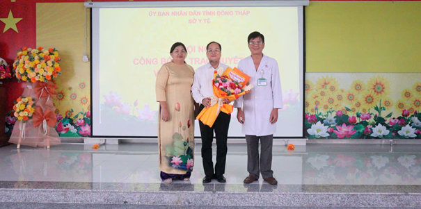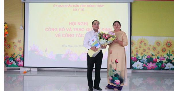 Bà Lâm Thị Ngọc Kim - Phó Giám đốc Sở Y tế tỉnh Đồng Tháp trao quyết định bổ nhiệm cho Ông Trần Văn Huyền.