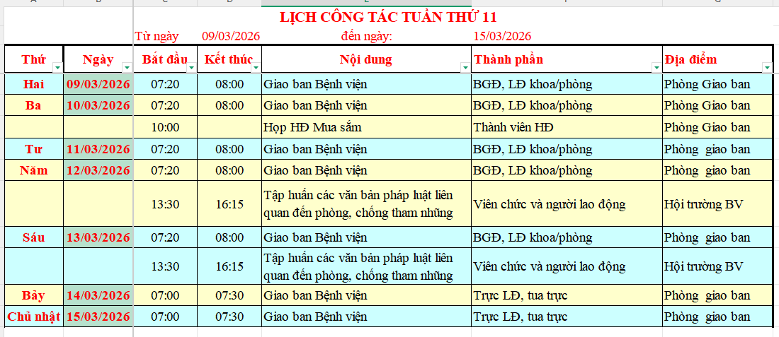 - Lịch công tác