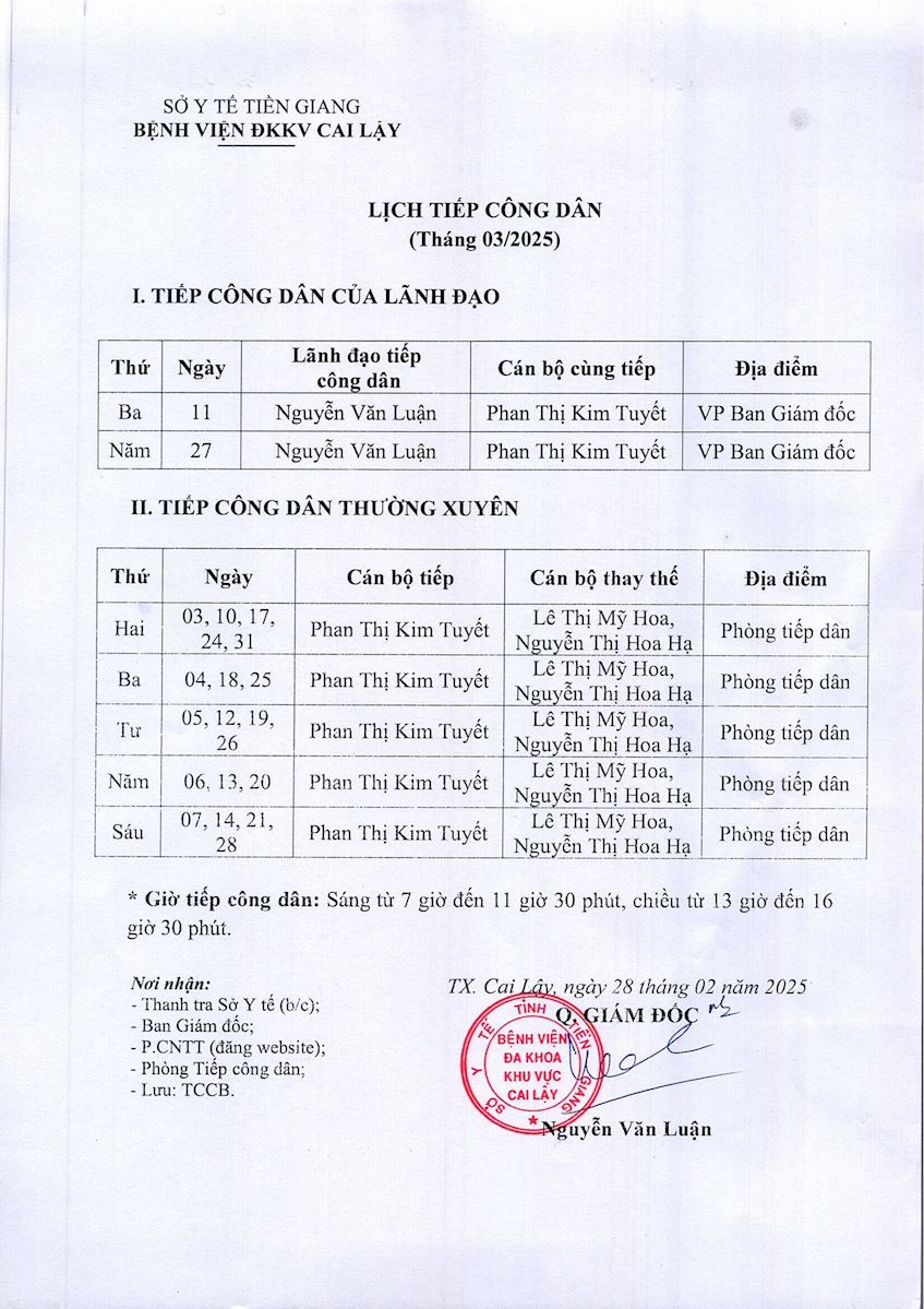 - Email: cailay.bvdkkv@tiengiang.gov.vn