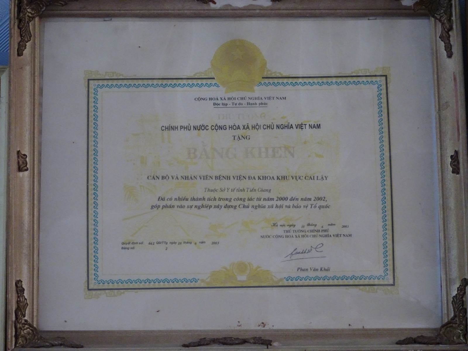 + 01 Bằng khen của Thủ tướng Chính phủ năm 2003
