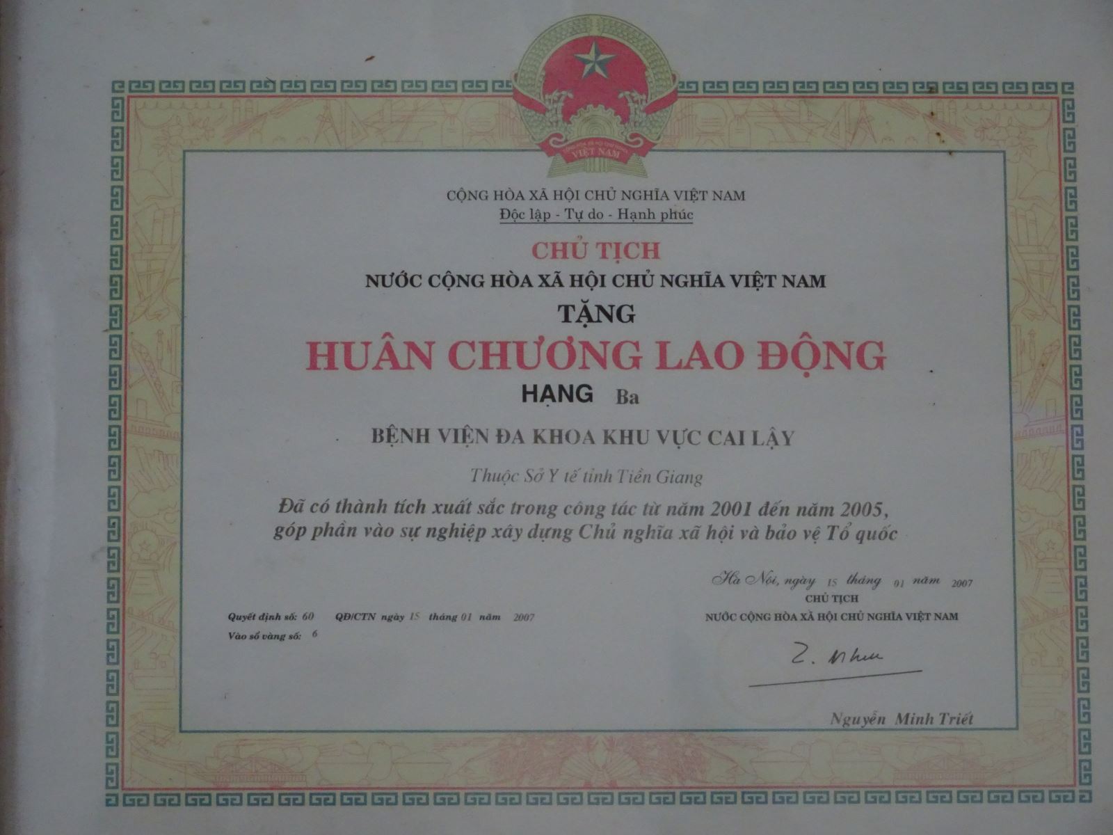 + 01 Huân Chương Lao động hạng ba năm 2006