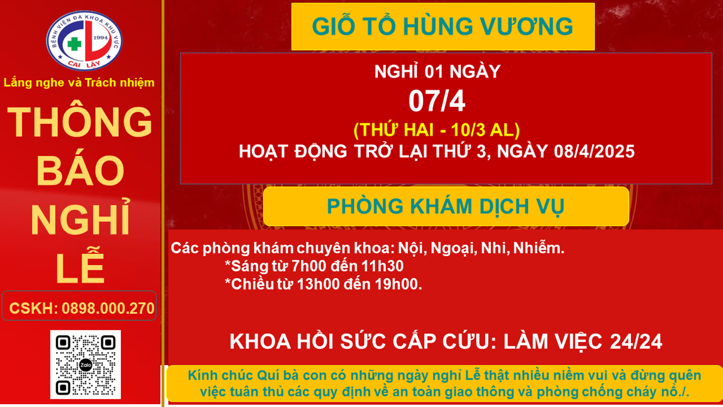 THÔNG BÁO NGHỈ LỄ GIỖ TỔ HÙNG VƯƠNG